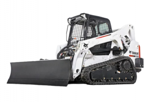 This heavy equipment machine is a type of tractor, sometimes on tracks. It has a front-mounted wide bucket connected to the end of two booms to scoop up loose material from the ground, like dirt, sand or gravel, and move it from one place to another. This heavy equipment machine is frequently used to move a stockpiled material from ground level and deposit it into a dump truck. Repeatedly the bucket can be replaced with other devices or tools like many can mount blades to lift heavy pallets or shipping containers.